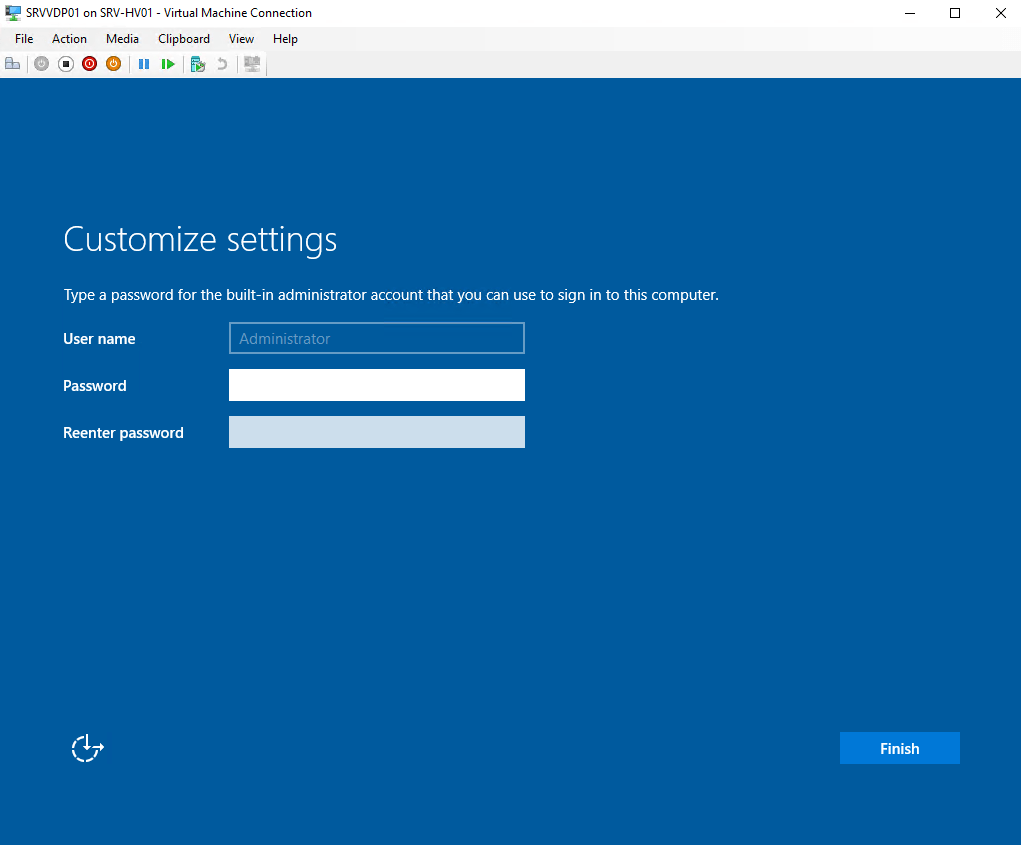 13 – After restart press Control+Alt+Delete (in yellow on Hyper-V Console) and create Password for your user.