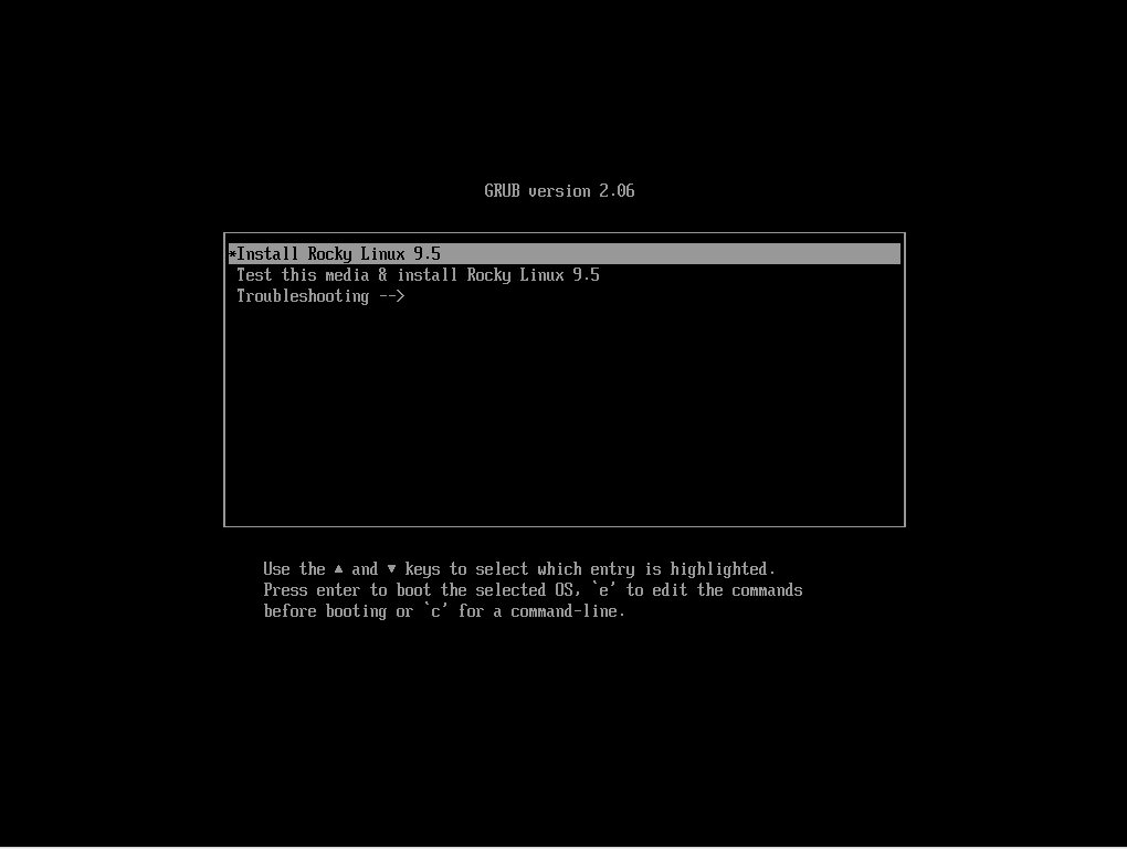 03 – Boot from the Rocky Linux 9.5 ISO and select Install Rocky Linux 9.5.
