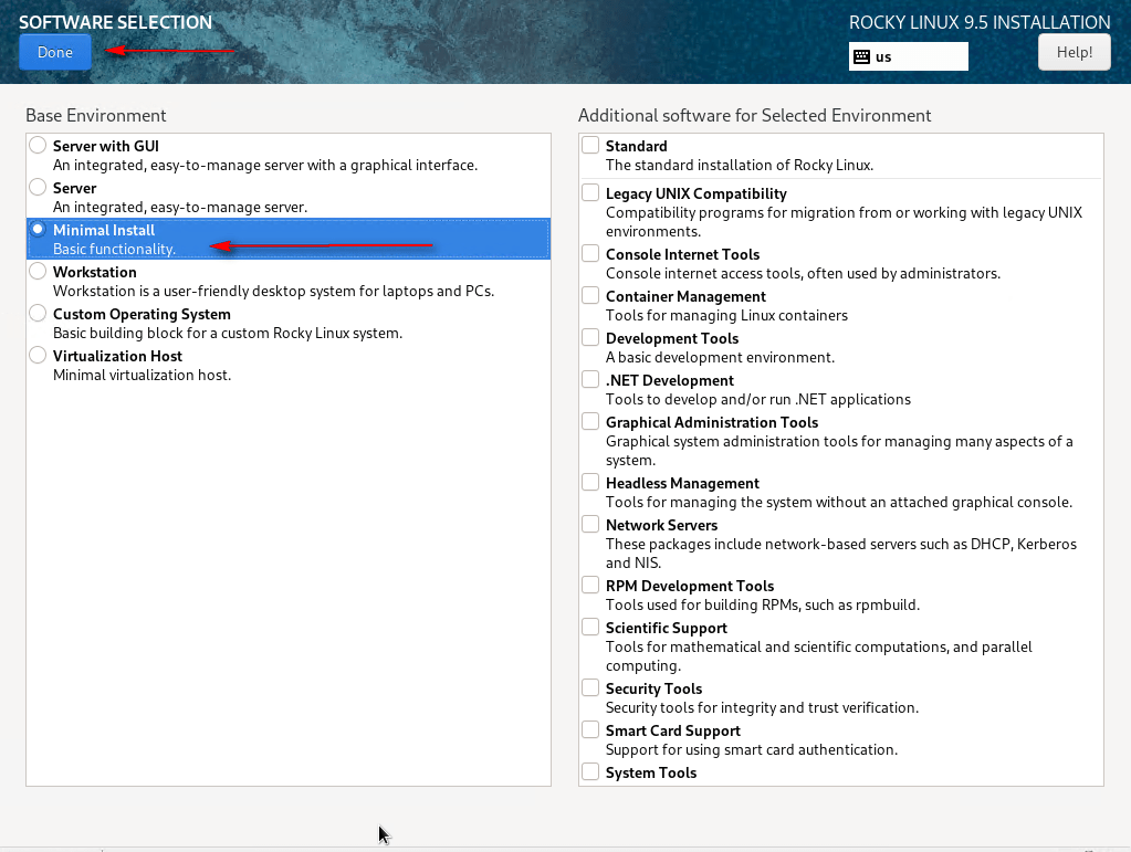 14 – In Software, select Software Selection, choose Minimal Install, and click Done.