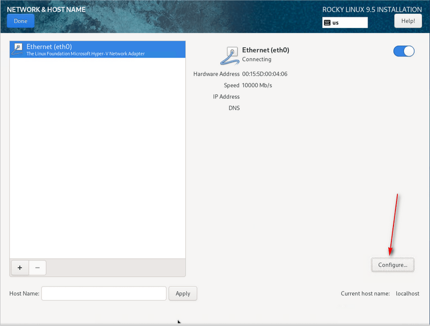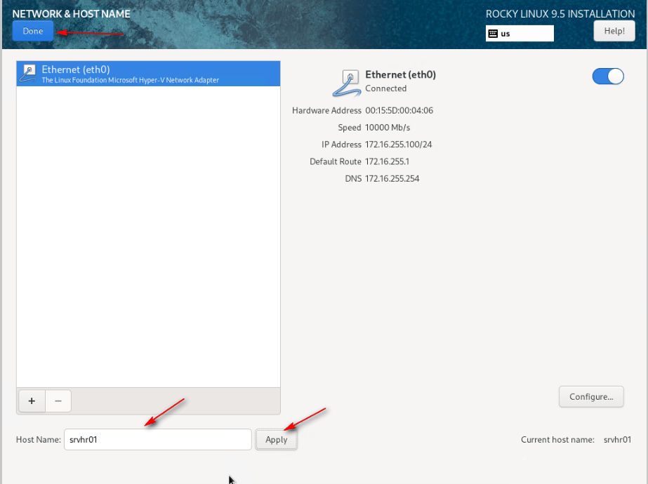 13 – Click Hostname, set the hostname, click Apply, and Done.