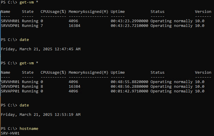 08 – Confirm the VM exists and is running on the Hyper-V host.