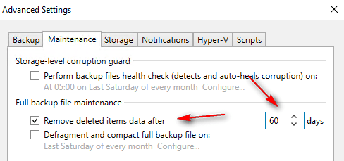 When you enable Defragment and compact full backup file, you can configure a weekly or monthly day for Veeam to run a task to compact your backups. Veeam will create a new full backup for all VMs currently in the job. If a VM has been removed from the job, Veeam will create a new, separate full backup for it. Note: This option works for Reverse and Forever Forward Incremental backups without Active or Synthetic Full Backups and may result in high storage consumption.