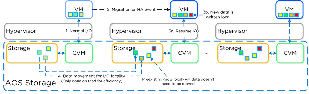 E se a VM migrar (Live Migration) para outro Node? O sistema entende a mudança. Inicialmente, o Stargate busca os dados remotamente (no Node antigo). Mas, em segundo plano, um processo transparente começa a trazer os dados “quentes” para o novo Node local. Em poucos minutos, a localidade é restaurada e a performance volta ao pico, sem intervenção humana.